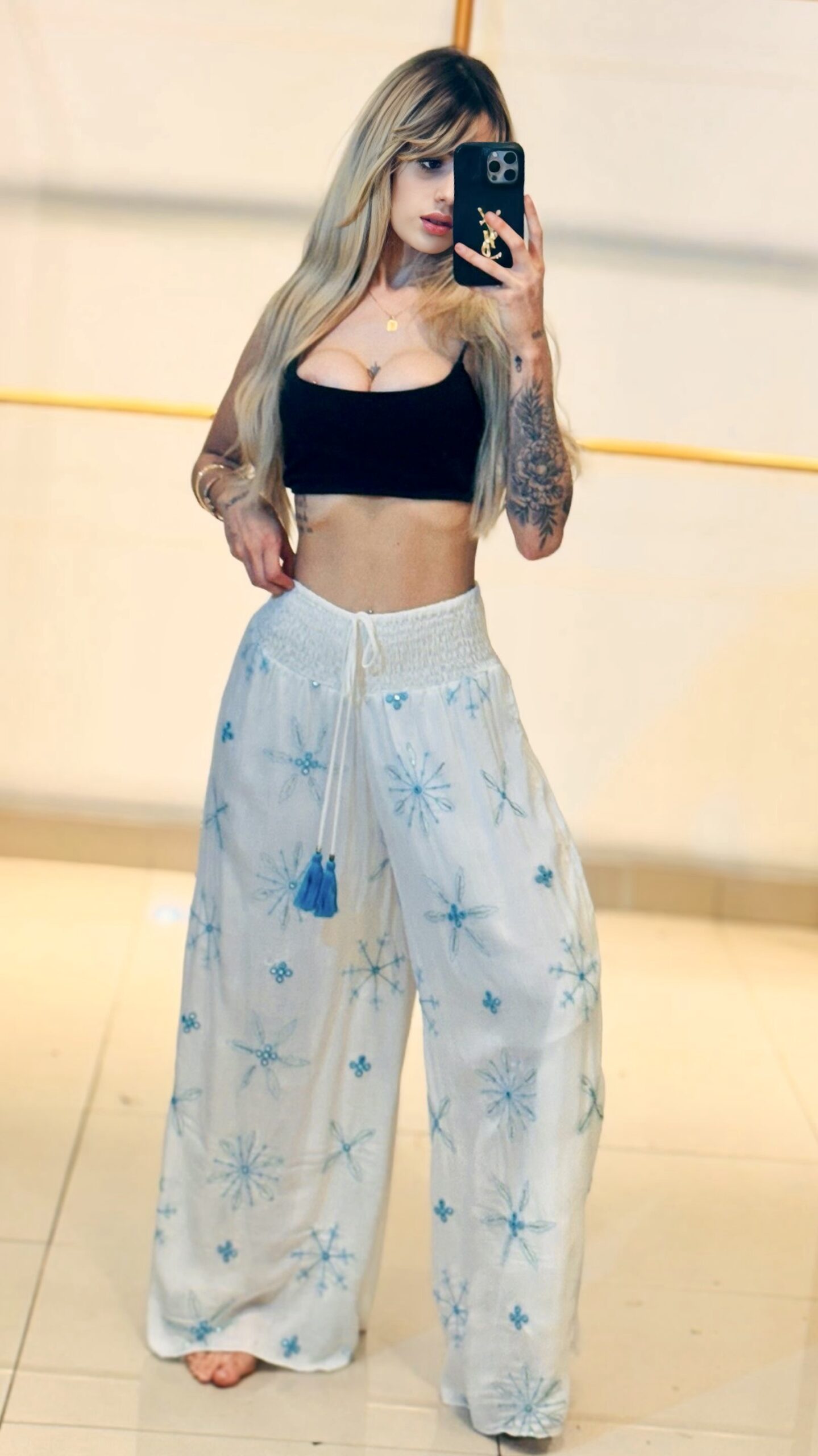 Esta calça é elaborada com um tecido premium que não apenas parece sofisticado, mas também é extremamente confortável. Com um caimento perfeito e um toque suave, você sentirá a diferença ao usá-la. O estilo boho, caracterizado por suas linhas fluidas e estampas vibrantes, traz um ar descontraído ao seu visual. Além disso, as diversas opções de cores permitem que você escolha a que mais combina com sua personalidade.